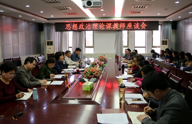 3月21日下午,学校在办公楼第三会议室召开思想政治理论课教师座谈会。校党委书记郭翠芬、党委副书记王淑霞出席会议,党委宣传部、学生处、团委、教务处、马克思主义学院主要负责人和全体思想政治理论课教师参加会议。座谈会由王淑霞主持。