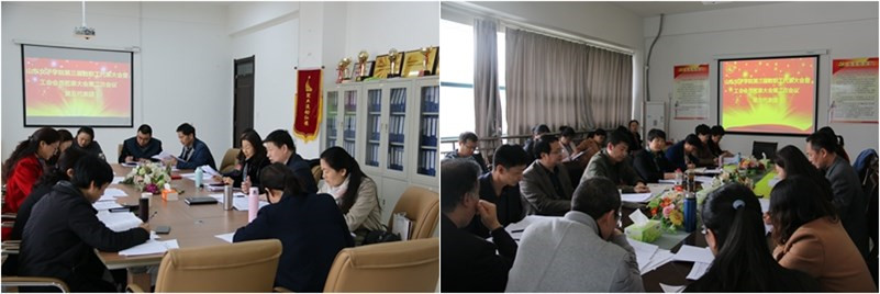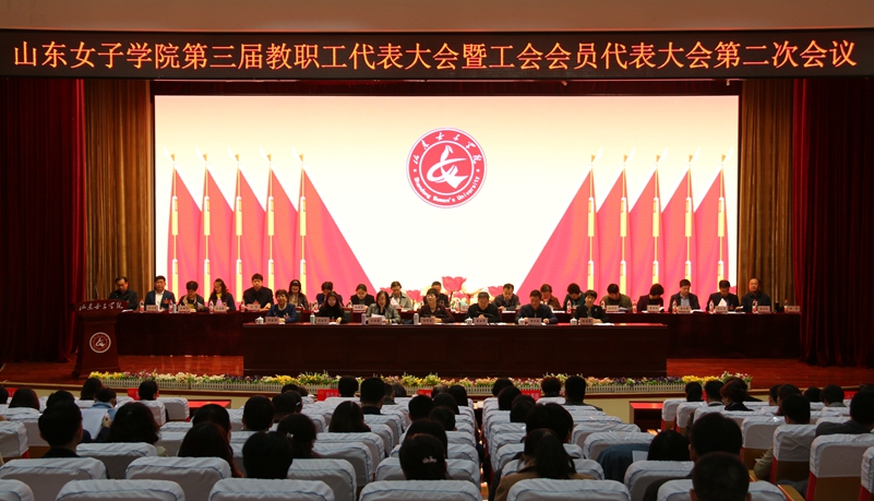 分组讨论之后,按照预定议程举行第二次全体代表会议。经过全体代表审议,会议表决通过了《学校工作报告》《工会工作报告》《财务工作报告》《关于调整学校“十三五”事业发展规划及分规划文字及核心指标中期的说明》《关于更改学校类别的说明》《关于唐槐片区合作开发建设的建议》《山东女子学院教职工代表大会实施办法》《山东女子学院教职工代表大会提案工作条例》的决议(草案)。