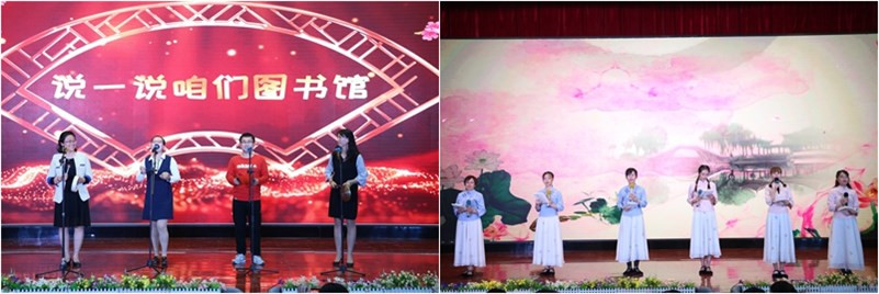 整场晚会以小朋友们带来的《弟子规》以及图书馆老师和志愿者共同朗诵的《阅读的力量》作为开场,展现了儿童、大学生、教师三代人对阅读的赞扬与期望。晚会分为“历史”、“文化”、“时代”三个篇章。高山流水遇知音的古琴合奏《流水》、凄婉感人的双人舞《觉妻书》极具传统古风;图书馆老师带来的三句半《说一说咱们的图书馆》体现了书文化的发展之快以及女院图书馆各项借阅设备的智能化与阅读方式的多样化;由图书馆志愿者协会成员带来的小品《甄嬛外传》引爆全场,带来阵阵欢呼;压轴书模走秀《灼影墨魂》,把我们带回了华夏五千年文明的历史长河之中,通过服装、礼仪、代表作品朗诵等方式展示了不同历史时期的文化风貌,让人耳目一新。晚会在大合唱《我和我的祖国》中落下帷幕。