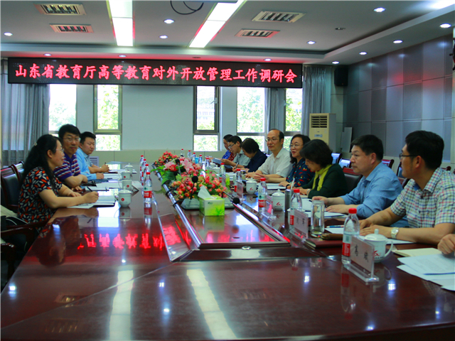 5月28日下午,山东省教育厅调研专家组栾凤池一行4人来校调研高等教育对外开放管理工作,听取学校对外开放工作的汇报,通过座谈交流、查阅资料、实地考察等方式了解学校对外开放管理工作。校长盛国军接见了专家组一行。校党委副书记王淑霞主持并代表学校做了汇报。学校相关单位有关人员参加会议。
