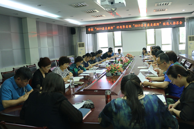 6月11日下午,学校在办公楼第三会议室召开学校“2019最美教师”暨省级“2019齐鲁最美教师”候选人评审推荐会。党委副书记王淑霞主持会议。师德建设委员会成员参加会议。