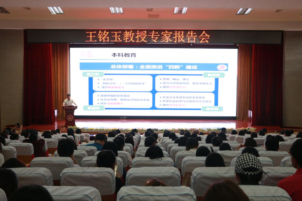 6月13日上午,天津外国语大学原副校长王铭玉教授应邀来校作题为“本科教育与金课建设”的专题报告。学校领导、全体专任教师及管理人员参加报告会,校长盛国军主持报告会。这是我校教学工作会议暨院长论坛系列活动的第二场专家报告会。