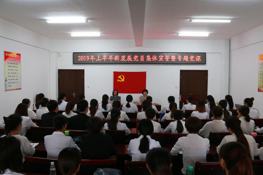 宣誓仪式后,党委副书记王淑霞以《不忘初心,牢记使命,做合格共产党员》为题为新发展党员上了入党第一课。她从初心谈起,围绕政治上成为表率、学习中成为楷模、生活里成为模范三个方面对如何做合格共产党员进行了阐释。希望新党员坚定理想信念,不忘初心,牢记使命,提高政治站位,增强党性修养,以实际行动践行自己的入党誓言,真正发挥共产党员的先锋模范作用。