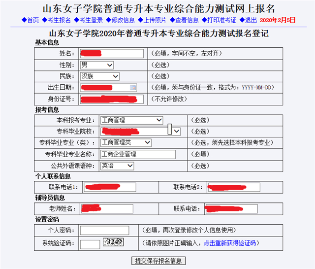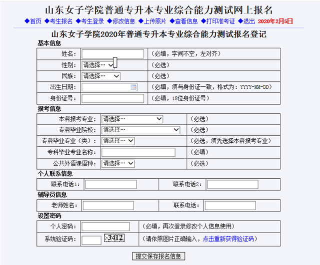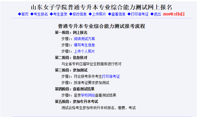 我校2020年专升本专业综合能力测试自荐考生报名采用网上报名方式,具体说明如下: