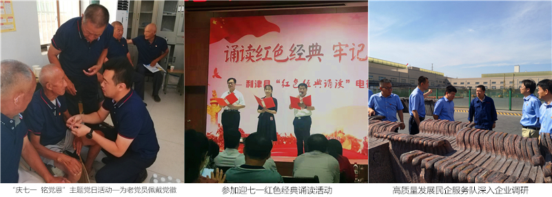 学校驻菏泽市定陶区冉堌镇省派“第一书记”工作组,组织所在村党支部召开主题党日活动、为党员佩戴党徽、重温入党誓词、在党旗下拍“生日照”、 发放政治生日卡等活动,与党共同度过了自己的政治生日。我校“万名干部下基层”乡村振兴服务队、民企高质量发展服务队同志深入民企开展调研,参加驻地“迎七一”红色经典诵读活动,庆祝建党98周年。