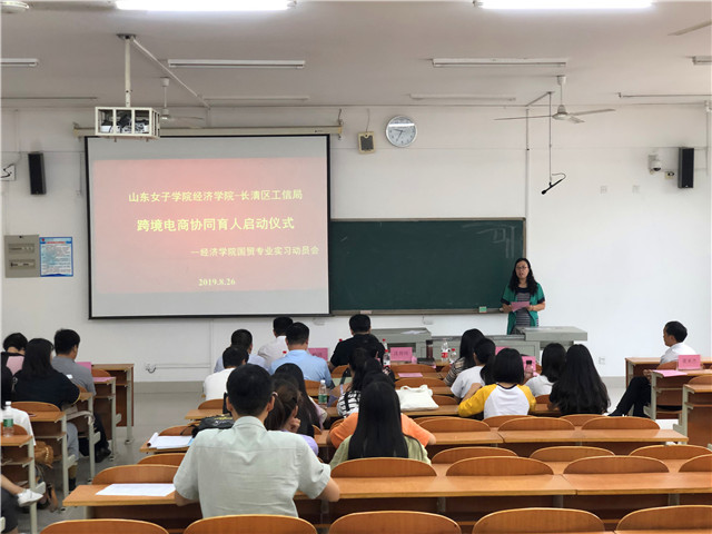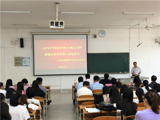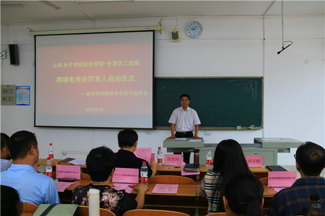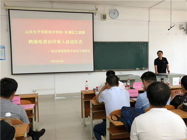 8月26日上午,经济学院与长清区工业和信息化局(商务局)跨境电商协同育人启动仪式在学校博文楼103举行。长清区工业和信息化局(商务局)副局长闫新礼、外贸科科长董来杰,学校科技产业管理处、经济学院负责人出席活动。长清区十家外贸企业的负责人及学校2017级国际经济与贸易专业的学生参加了此次活动。