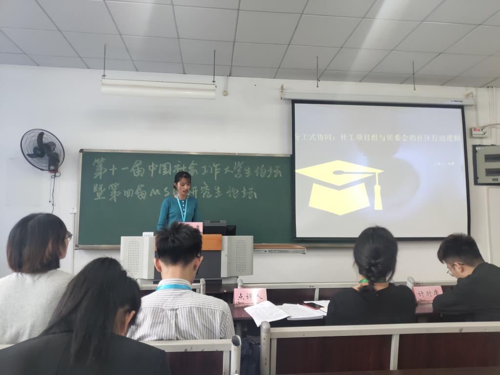 会议由全国社会工作专业学位研究生教育指导委员会、中国社会工作教育协会主办,论坛的主题为“新时代我国社会工作的高质量发展与学生培养”,论坛共吸引了来自全国120多所高校的196名社会工作专业本科生、硕士研究生和博士研究生参会,共收到206篇论文。我院社会工作专业2016级本科生马路遥、许元馨提交的《分工式协同:社工项目组与居委会的社区行动逻辑》和《流动中的隔阂:随迁老人城市社区融入问题研究》两篇论文入选参加论坛,其中马路遥提交的《分工式协同:社工项目组与居委会的社区行动逻辑》获得本科组二等奖,并做会议交流发言。
