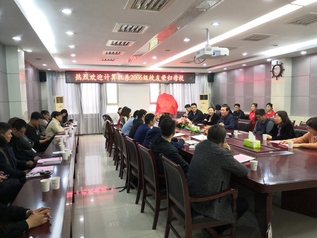 金秋十月,硕果累累,举国同庆,盛世欢歌。在我校67周年校庆来临之际,数据科学与计算机学院2006级校友举办返校活动,共同庆贺母校生日。10月19日上午,校友师生见面会在学校第三会议室举行。副校长贺兴利,科技产业管理处(服务地方办公室、校友办)负责人、数据科学与计算机学院教师代表和部分校友参加了此次见面会。