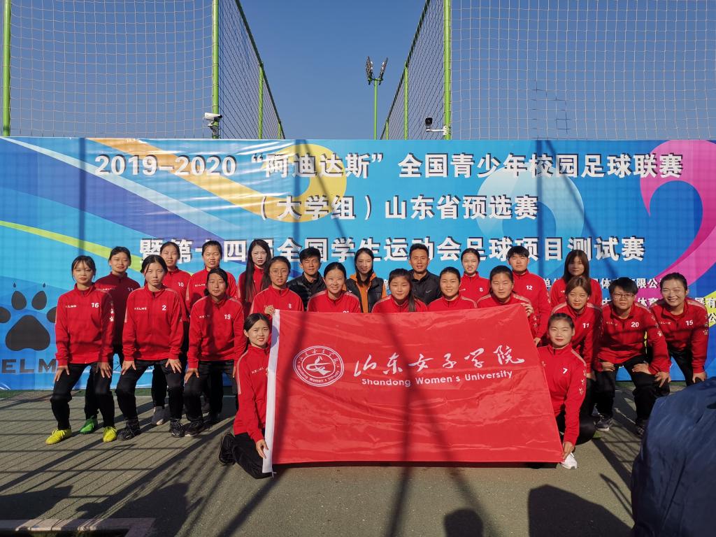 近日,“阿迪达斯”全国青少年校园足球联赛(大学组)山东省预选赛在青岛举行,共有来自全省20多所大学参加了本次赛事。我校选拔出20名优秀同学组成女子足球队,并由体育教学部专业老师分别担任领队和教练。