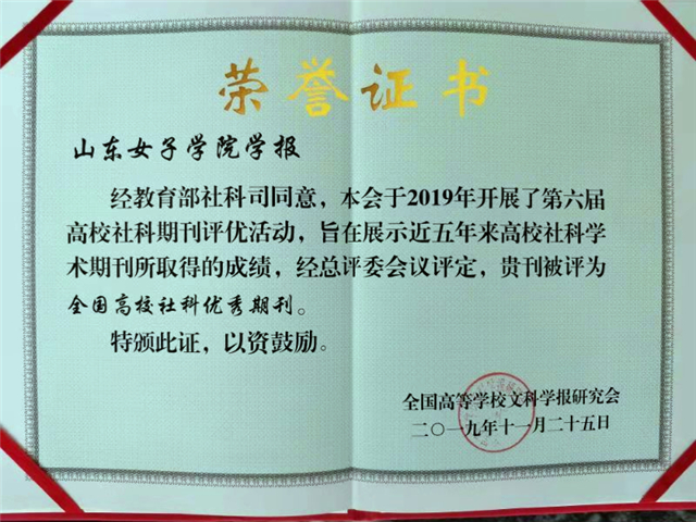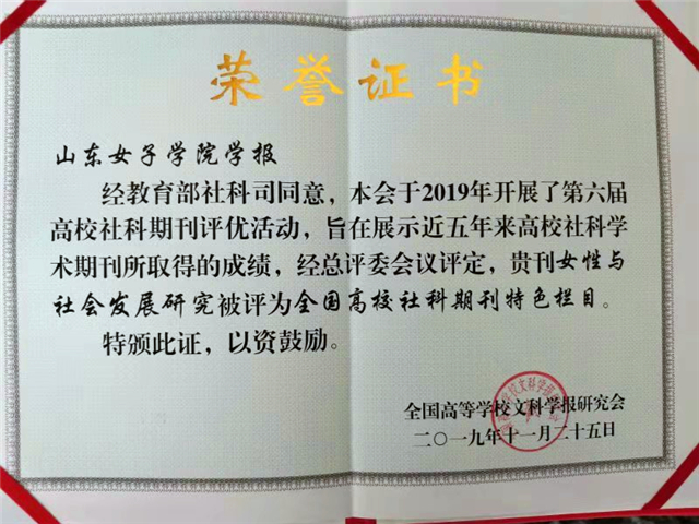 《山东女子学院学报》编辑部将以此次获奖为契机,努力提升办刊质量和学术水平,进一步彰显办刊特色、扩大学术影响,为打造特色鲜明的高水平妇女/性别研究专刊贡献力量。