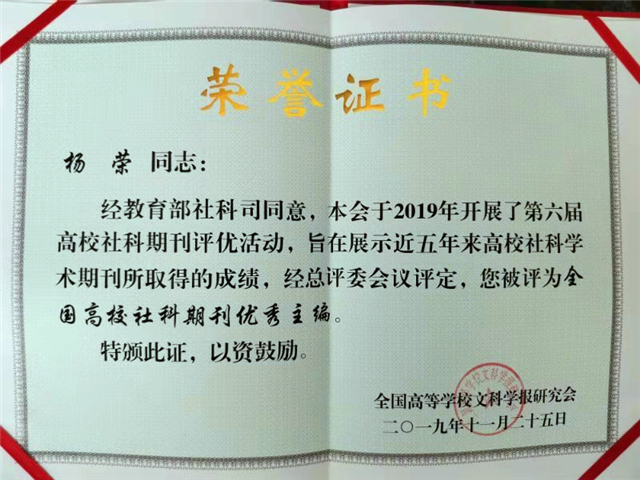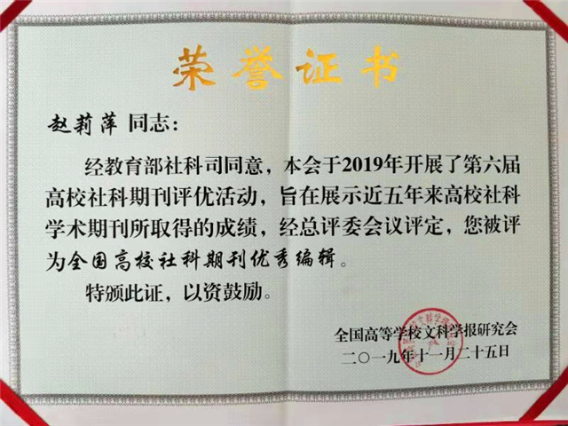 11月26日,由全国高等学校文科学报研究会主办、肇庆学院承办的“‘双一流’建设背景下高校学术期刊的责任与使命研讨会暨全国高校文科学报研究会第八届理事会第五次会议”在肇庆学院召开,《山东女子学院学报》获得多枚奖项,《山东女子学院学报》执行主编、教授陈业强参加了会议。
