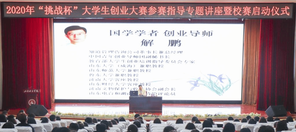 12月5日,由校团委主办的2020年“挑战杯”大学生创业大赛参赛指导专题讲座暨校赛启动仪式于图书馆C座二楼报告厅举办。创新创业资深专家、知道管理咨询公司董事长兼总经理解鹏担任主讲嘉宾,党委副书记王淑霞出席仪式并为解鹏颁发学校客座教授聘书,团委相关负责同志、各学院团总支书记和拟参加2020年“挑战杯”大学生创业大赛的师生、2019级新生代表共计370余人参加。