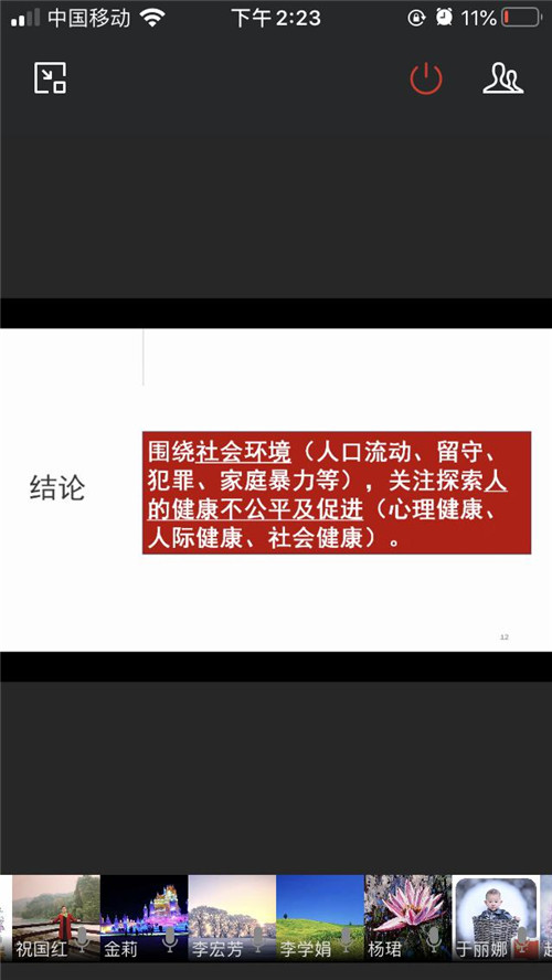 学科各方向负责人和骨干教师围绕研究主题进行了热烈的讨论。苏海博士提出跨学科的研究是未来研究方向,建议从实践的角度,尽快确定可落地的社区,从简单的主题切入进行实践研究。林存秀博士从生态女性主义的领域出发,建议团队成员对前期研究方向与当前主题进行结合。金莉副教授提出从大健康的概念出发,对研究地域进行选择。赵记辉副教授从社会环境与健康的难点、核心观点、社会科学的研究、医学的关注、大健康与健康教育学院、新文科建设等层面进行分析,进而提出了依托社区的健康管理(母婴健康、老年人健康、残疾人健康),通过“教学—科研—社会服务”相结合,调研和干预结合的方式,围绕社会环境(人口流动、留守、犯罪、家庭暴力)关注探索人的健康不公平及健康促进(心理健康、人际健康、社会健康)。王文静博士从人文性的健康概念出发,提出关注社会福祉,关注社会矛盾,回应社会需求等方面的观点。其他教师分别从研究方法、研究方向及研究切入点等层面进行了讨论和发言。