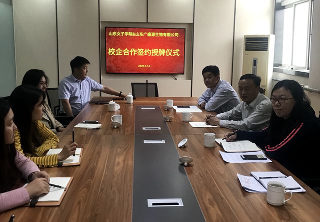 5月14日下午,学校与山东广盛源生物科技有限公司举行校企合作签约授牌仪式。学校科技产业管理处、经济学院相关负责人,山东广盛源生物科技有限公司领导参加仪式,双方进行了座谈交流。
