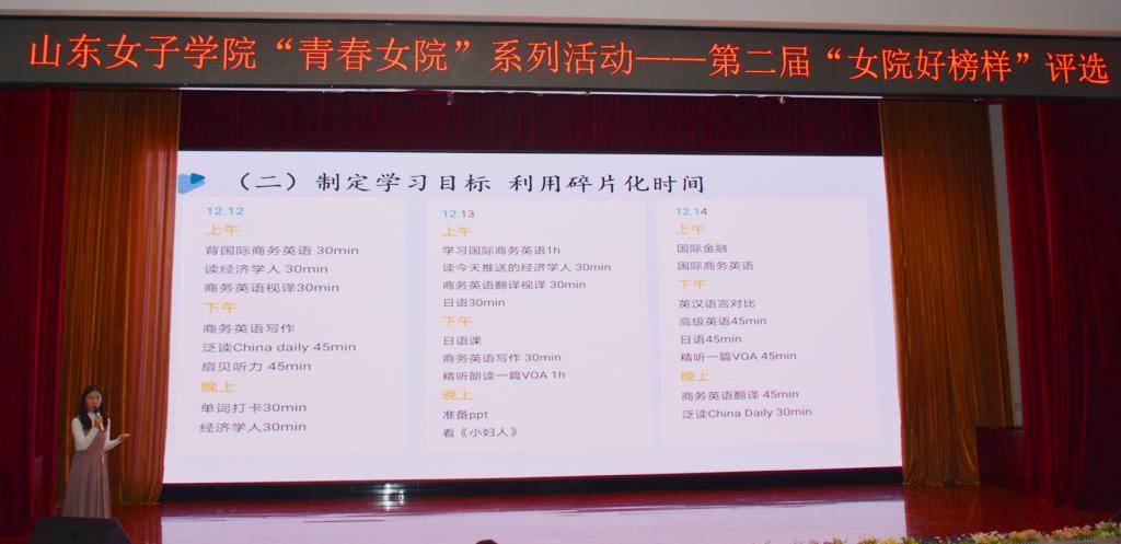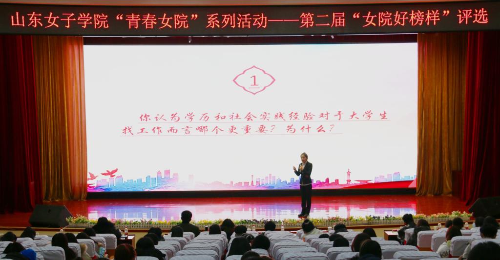 12月17日下午,由学校团委主办、外国语学院团总支承办的第二届“女院好榜样”评选在图书馆二楼报告厅举行。学生处、招生就业处、团委相关负责同志以及各学院学生会成员代表担任评委,170余名“青马工程”2020级团支部书记培训班学员组成大众评审团现场观摩。