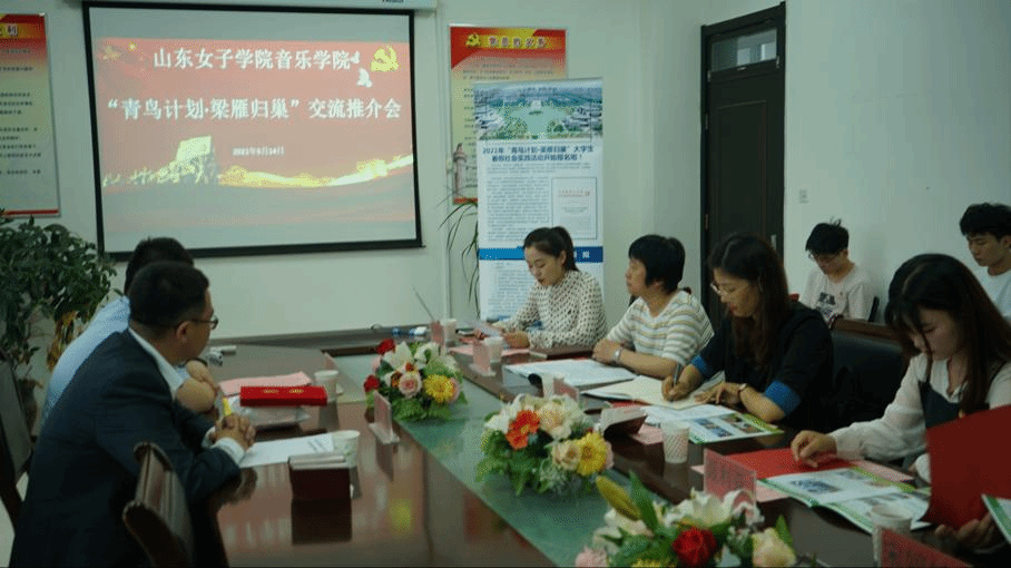 为助力“引凤还巢”就业工作大局,扎实推进“青鸟计划”工作开展,更好地服务梁山籍大学生,5月14日下午,梁山团县委副书记杜晗、梁山团县委金融挂职副书记李尚宾等一行4人赴学校音乐学院召开“青鸟计划·梁雁归巢”交流推介会。校团委和音乐学院负责人、辅导员及部分“女院梁山青鸟驿站”的同学参会。