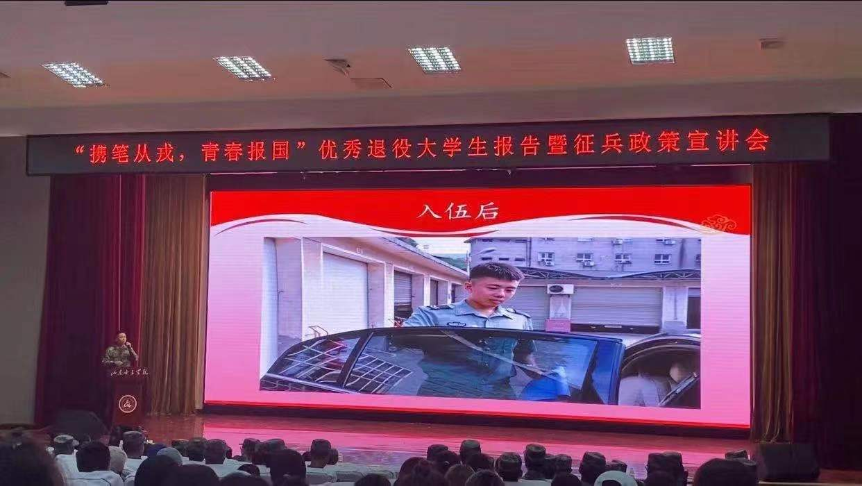为增强大学生的国防意识,鼓励大学生积极参军入伍,5月28日晚,学生工作处(武装部)在图书馆第二报告厅举行“携笔从戎青春报国”优秀退役大学生报告暨征兵政策宣讲会,学生处负责人、各学院辅导员及300余名学生聆听了报告。