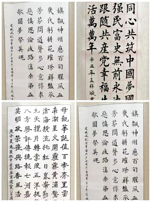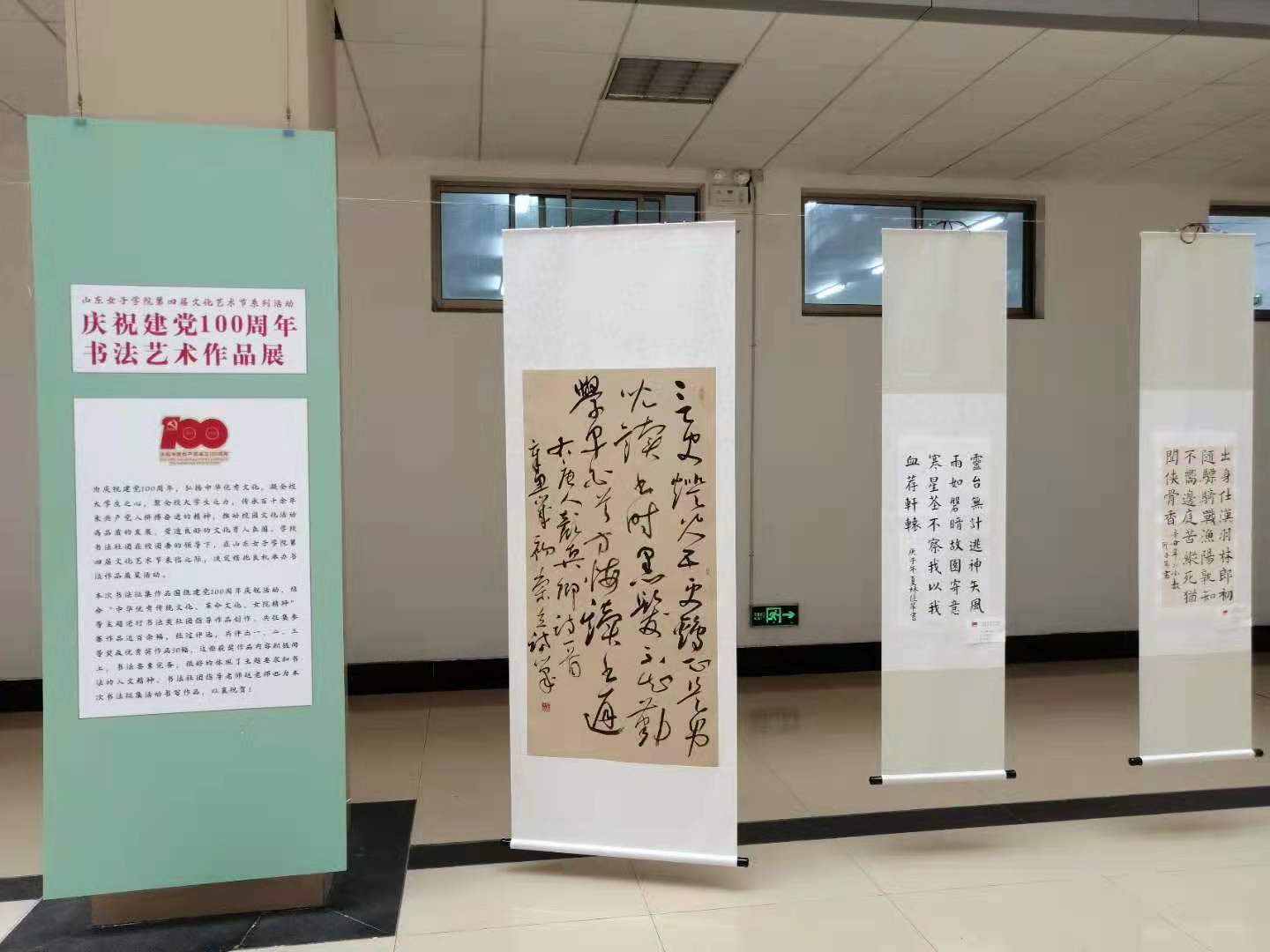 近日,由校团委主办、大学生书法社团承办的“第四届文化艺术节系列活动之庆祝建党100周年书法艺术作品展”在博文楼一楼大厅展示。