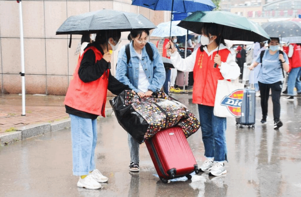 志愿者们描述了一个画面,孩子的妈妈给爸爸撑着伞,爸爸拎了一袋水果,说:“孩子,快拿着,自己家种的,跟同学分着吃。”女儿一手提着行李箱,一手撑伞,说拿不过来了。弟弟拿了一个苹果,踮起脚尖放进了姐姐外套的帽子里,一家人都笑了。为鼓励更多的青年学生广泛参与志愿服务,学校出台了《志愿服务“1小时计划”》,号召团员青年每年志愿服务不少于20小时,但其实,就是这样简单又温馨的瞬间,才是女院青年志愿者们力量的源泉。
