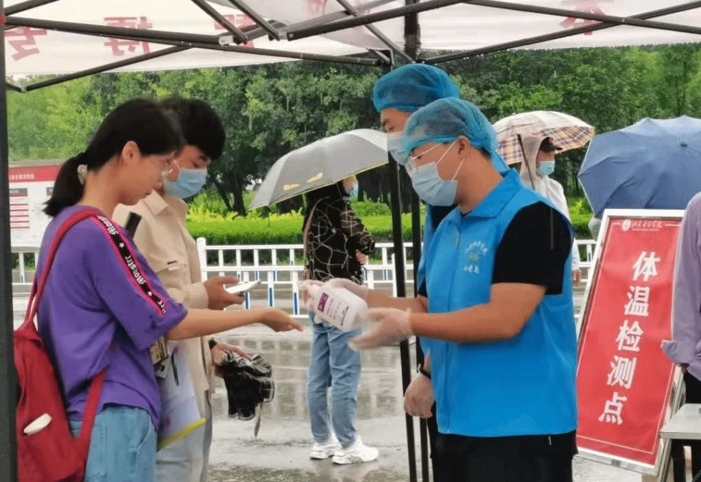早上六点半,负责疫情防控的“小青鸟”志愿者们就已经到岗。伴着绵绵细雨,他们顾不上被打湿的裤脚,坚持奋战在自己的岗位上。防疫是入校的“第一关”,坚守在校门口的防疫志愿者是全校学子的安全保障。他们深知自己责任重大,丝毫不敢懈怠。19级外国语学院朱美霖同学说道:“每一位新生入校时,我负责给他们进行体温检测和手部消毒。工作内容并不复杂,工作量还是不小。我们每个岗位1个小时进行一次轮岗,忙不过来的时候,休息期间我们也帮忙运送行李,非常充实。特别欣慰的是,在今天的志愿服务中,我们收获了数不尽的感谢,尽管彼此都戴着口罩,但我仍能看得出新同学们眉眼带笑意,这也让我收获到了作为一名志愿者的幸福。”