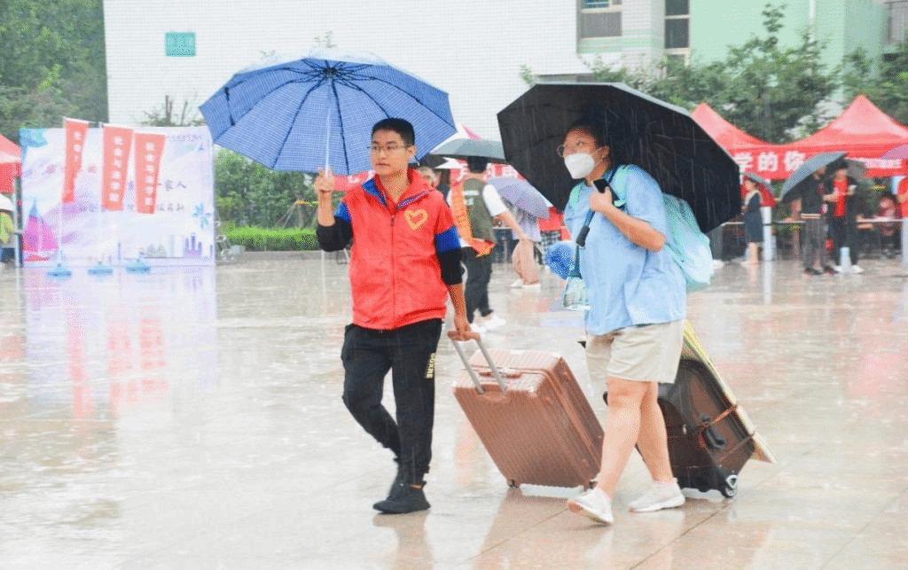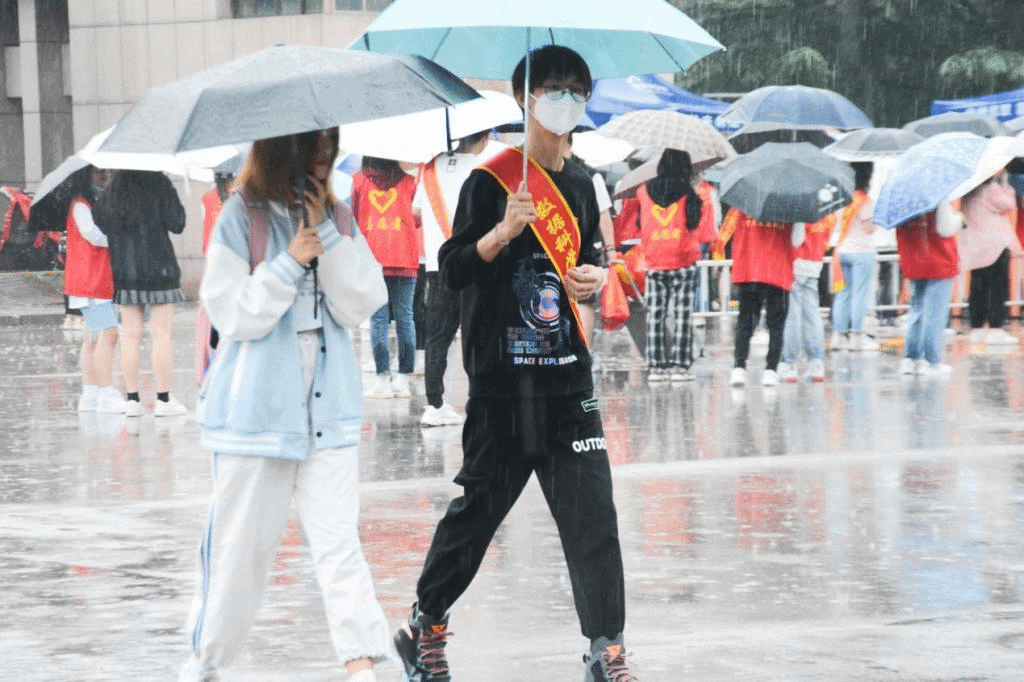 同样因为疫情防控的要求,今年新生需要独立完成入校报到手续。各学院派出大量“学长学姐”志愿者团队提供“一对一”服务,保障新生一入校就能够感受到如家一般的温暖。19级新闻采编与制作专业张镜琪同学主要负责校门口的新生分流工作,她已经数不清从家长手中接过了多少行李。在面对我们的采访时,她这样说道:“今天以前,我一直以为自己还是个‘宝宝’,没想到我竟然可以不间断的把那么多大箱子、小袋子转运到一对一志愿者手中。面对着许多家长的不舍和新生的不知所措,我们就是他们的定心丸。这一天我听到家长说过最多的话便是‘跟着这个学姐走,放心!’这些信任和感谢给了我力量,我仿佛也跟着他们瞬间长大了。淋雨也值得!”