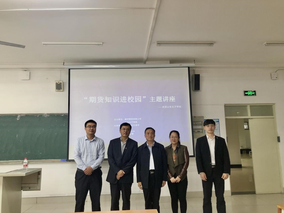 近日,经济学院与中央企业银河期货有限公司山东分公司共同承办了郑州商品交易所“期货知识进校园”主题讲座活动,银河期货有限公司咨询委员会副主任于晓鹏、分公司总经理于海川、经济学院院长沈传河、副院长冯亮及金融学、金融工程、投资学专业师生参加了讲座。