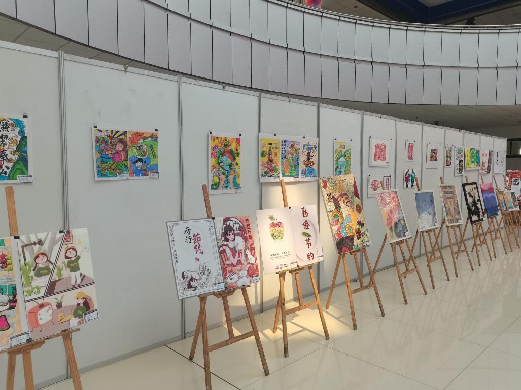 此次作品展征集了“书画摄影类”“艺术设计类”“网络新媒体类”“史料美文类”等各种类型的优秀作品。艺术设计学院师生将节俭环保理念践行于此次活动,利用废旧泡沫板进行作品装裱,讨论展览布置的基本思路,对展览进行周密有序的布展。