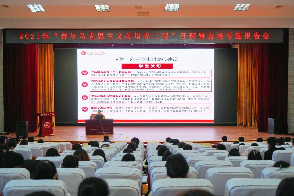 12月2日下午,学校举行2021年“青年马克思主义者培养工程”培训班开班暨首场专题报告会。学校发展规划处副处长兼高教研究室副主任王兴盈受邀为青马班学员做首场报告,学校2021级新生班级团支书、班长、校院两级学生干部代表、社团负责人等300余名学员参加,团委负责人主持。