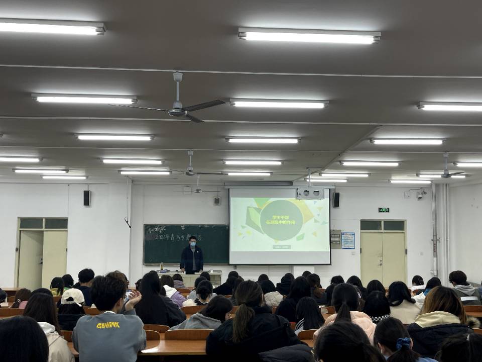 学生工作处副处长赵贵阳以《班级管理在学生工作中的重要作用》为题做专题报告,通过解读学校在班级管理方面出台的制度、政策,帮助青年骨干们更好的发挥班团支部在学生教育管理中的作用,落实好“学校、学院、班级”三级联动机制,切实发挥每一名学生干部的主动性和自觉性,不断提高学生教育管理的水平。