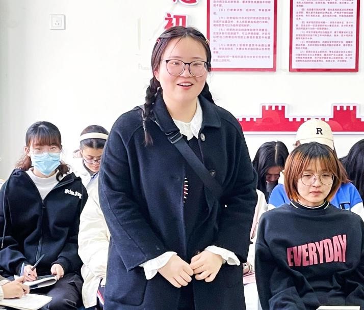 王飞就学风的内涵与学生进行了互动交流,他提出学风的四种形象以及大学生应具备的四种能力引发大家的思考,当代大学生不是“熬日子”“混日子”,而应是“过日子”“奔日子”,他希望学生们在大学中奔向自己的目标,为自己的理想而努力奋斗。而后,崔江宁对学院的学风建设工作提出要求。她指出,要充分认识学风建设的重要性,始终将学风建设作为一项重要工作抓牢抓实;以学院“十四五”规划为指导,通过打造学风建设品牌、提升考研率、发挥院级奖学金激励作用等方式方法,出实招见实效,积极构建学风建设工作体系;希望全体师生共同努力,推进我院学风建设再上新台阶。