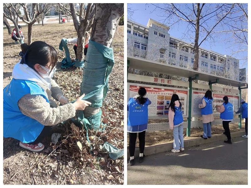 在校园内,“校园环境,文明先行”校园环保系列志愿服务活动在图书馆、各个公寓、教学楼、公告栏等地点进行。志愿者们集体行动,擦拭校园公告栏、清理校园小广告、帮助后勤处进行树木美化,分工明确,有条不紊,提高了同学们的奉献意识、文明意识,倡导同学们为校园环境保护贡献自己的一份力量。