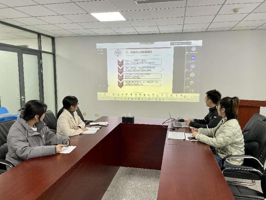 北京联合大学调研会上,北京联合大学旅游学院旅游实践教学中心主任陈险峰介绍旅游学院概况,通过线上云参观了各个实验室并进行了详细讲解。