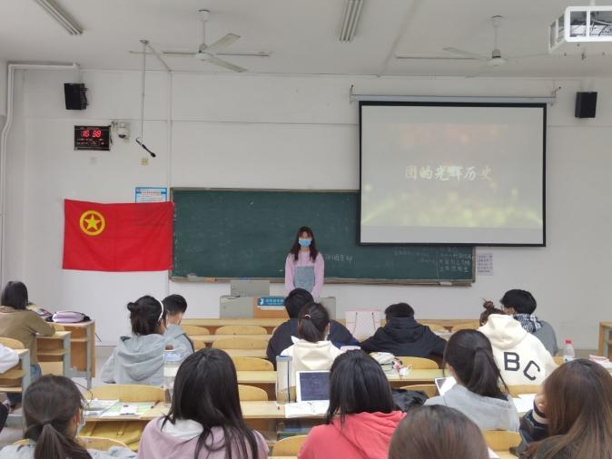 活动中,各团支部书记首先带领同学们面向团旗重温入团誓词、齐唱团歌,以团员青年独特的方式,坚定永远跟党走的理想信念。其次,通过学院微信公众号“百年团史微课堂”专题,学习新民主主义革命时期、社会主义革命和建设时期、改革开放新时期以及党的十八大以来的中国青年运动史综述,收看了《共青团公开课之“团的光辉历史”》专题视频课程。最后,同学们在学习讨论中积极发言,分享学习心得体会。
