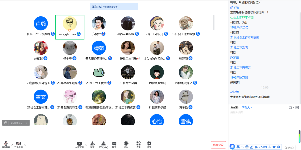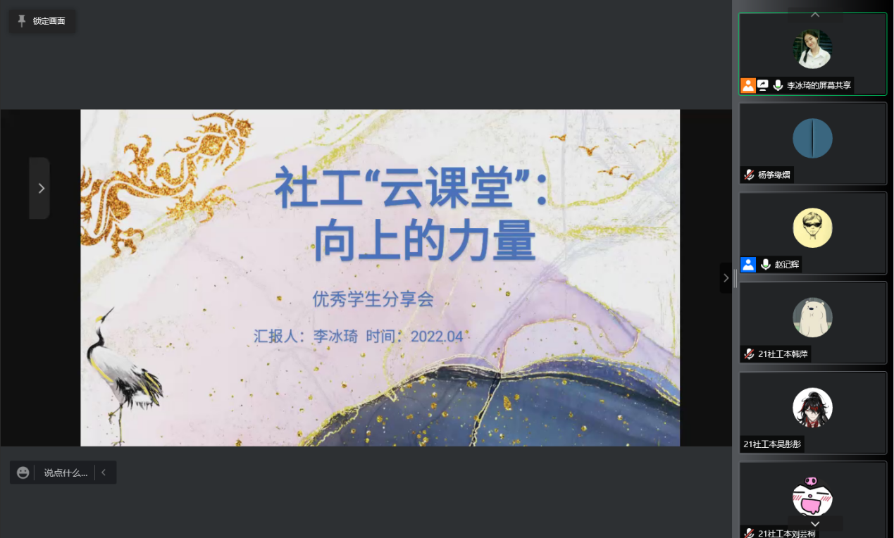 4月份以来,社会工作专业积极整合校内外资源,一是通过线上方式,持续推进导师关爱陪伴计划,及时跟进学生学业、毕业论文、考研和就业情况;二是加强朋辈交流,先后组织了考研“云分享”、优秀学生分享会等交流活动;三是优化学术资源,邀请境内外专家学者开展社会工作国际前沿论坛,开拓学生专业视野;四是积极链接市区民政局和社会工作机构,开展实践“云经验”、汇聚一线计划和云招聘计划,探索基于云上助“学”新方式。活动启动以来,先后邀请了省优秀学生干部李冰琦、优秀毕业生张子涵等为在校生分享了大学成长经验和考研经验。同时各导师结合学生需要,积极为学生开展了社会工作研究、社区社会工作技巧等报告,开阔学生视野。