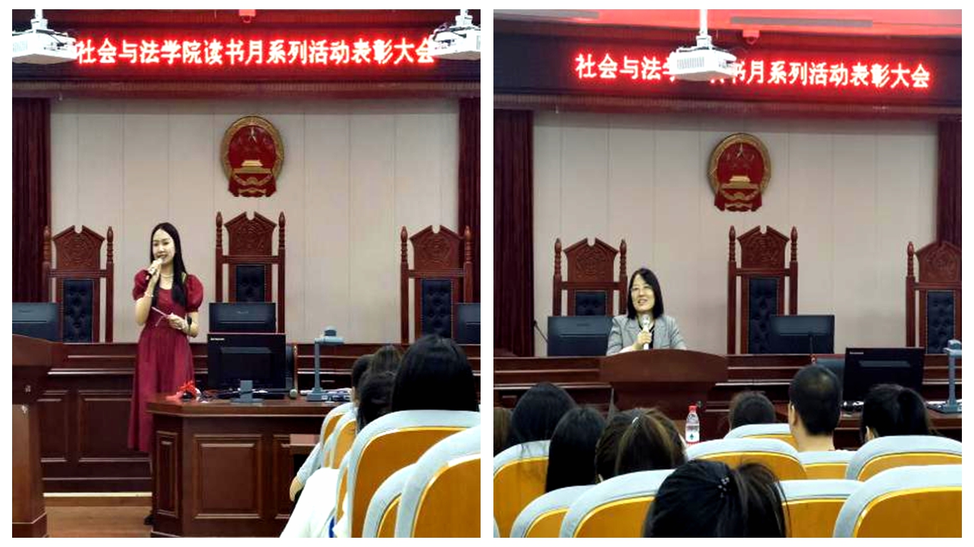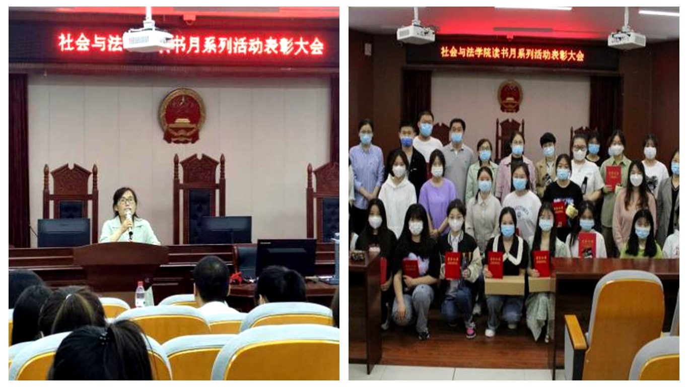 疫情难阻书香,阅读润泽心田。为迎接第27个“世界读书日”,社会与法学院自3月份开始面向全院学生开展“开卷有益,书香社法”读书月系列活动。近日,学院召开读书月活动表彰大会,图书馆馆长李霞、学生工作部(处)副处长赵丽丽、团委副书记翟斐、社会与法学院党委书记杨洋、副书记吴玉霞,辅导员及部分获奖学生代表参加表彰大会。