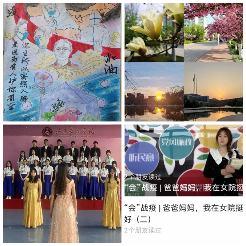 注重以文化人,用文艺力量凝聚战疫正能量。承办学校“女院的春天 看校园花开”师生随手拍活动,记录校园美好影像,营造校园文化氛围;举办“凝聚青春的力量”五四云合唱比赛,融入诗歌朗诵、舞蹈等形式,各支部线上接力唱,活跃校园艺术氛围,彰显学生积极向上的精神风貌;开展会战“疫”系列活动,镜头里的记‘疫’摄影大赛、以艺战“疫”主题绘画比赛、我的战“疫”日记、“疫”封家书展信安等活动,展现了战“疫”最美瞬间。我院学子为这个特殊的春天送上了特别的艺术作品,向战“疫”英雄致敬,其中网络文化作品“疫”封家书之《爸妈,我在学校挺好的》引发师生和家长的强烈情感共鸣。