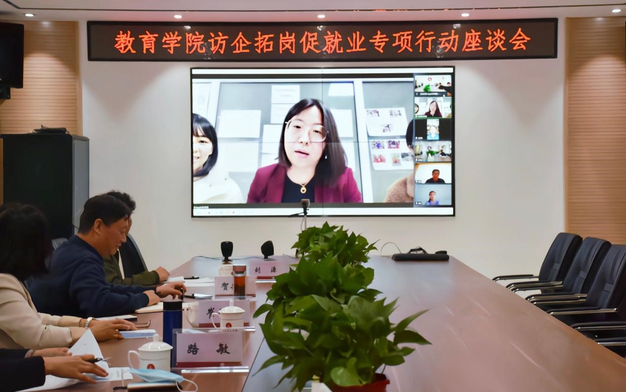 为拓宽就业市场,破解就业难题,积极响应教育部“书记校长访企拓岗促就业专项行动”工作部署,5月9日下午,教育学院与新加坡伊顿国际幼儿学校(济南校区)进行访企拓岗促就业线上座谈。学校党委委员、副校长贺兴利、学校招生就业处副处长杨东、教育学院党政领导及相关老师共同参会。本次座谈会由教育学院党委副书记路敏主持。