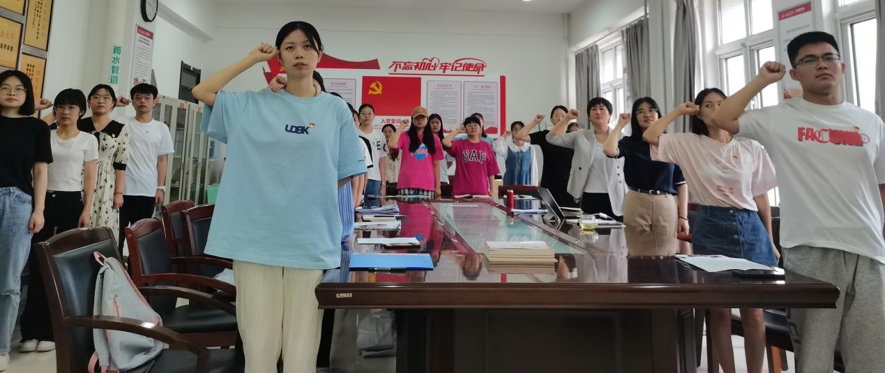 毕业生党员孙京鹏代表全体毕业生党员做出庄严承诺:“坚定理想信念,勇担时代使命;铭记校训,敢于拼搏;文明离校,站好学生党员最后一班岗!”新的征途即将开始,新的篇章即将翻开。正值风华正茂的我们,将继承和发扬党的优良传统和作风,立鸿鹄之志,把个人的理想追求融入到党和国家事业之中,为中华民族的伟大复兴添砖加瓦,彰显青年党员的先锋模范作用。