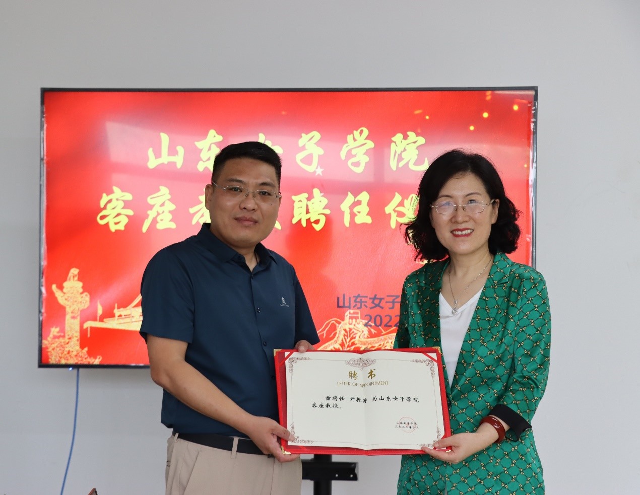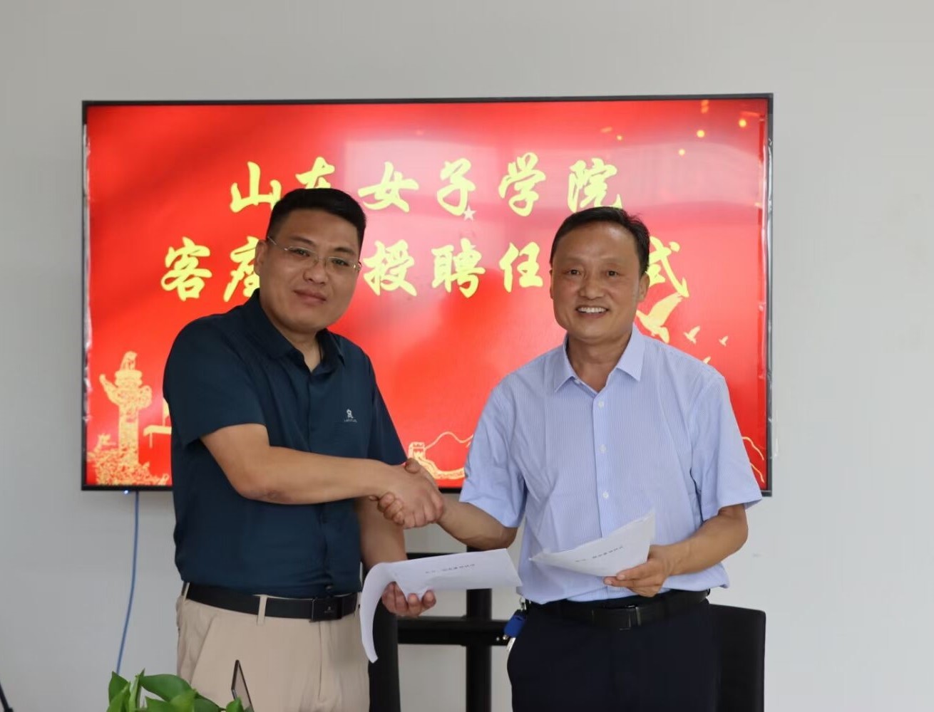 随后,刘恩允代表学校向亓振涛颁发了山东女子学院客座教授聘书。沈传河和亓振涛分别代表双方在校企合作协议上签字。亓振涛表示能够为女院发展做出自己的贡献深感荣幸和欣慰,自己将珍惜这次难得的合作交流机会,用好多年的科研积累和实践经验,用情用智用力服务好山东女子学院的创新发展,也希望与经济学院在实践教学方面加强合作,为培养更多的应用型人才贡献力量。