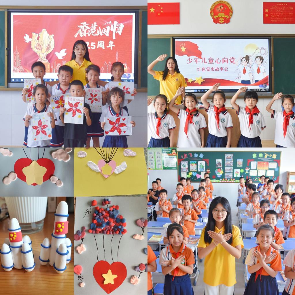 团队分别前往济南市小庄小学、临朐县实验中学附属小学、东营市广饶县同和幼儿园等多地,为孩子们带来美工、声乐、舞蹈、儿童剧等美育特色课程并开展了画展、赠书仪式、文艺表演、毕业典礼等系列活动。选取《中国梦娃》等声乐教材,将中华优秀传统文化融入音乐、舞蹈教育。与孩子们一起完成了“喜迎二十大”精品版画、“紫荆花开廿五载,少年‘翼’起正风发”主题绘画及粘贴画、致敬航天英雄主题太空泥作品等。