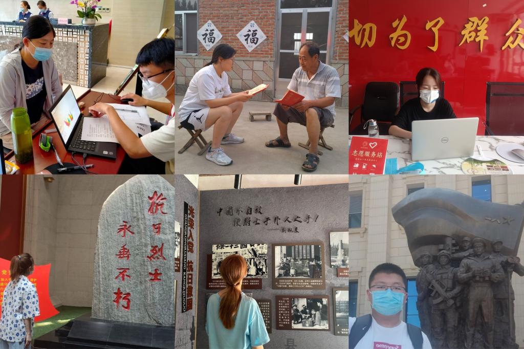 暑假期间,志愿者们返回各自的家乡,通过健康宣讲、共筑防疫城墙、守护个人健康等系列主题活动,开展敬老、爱老、助老,爱心托管助力儿童成长等社区志愿服务,并在七一之际,走访慰问身边的老党员,聆听红色故事,传承红色基因。与此同时,志愿者们先后前往德州解放阁、南京博物馆、台儿庄大战纪念馆、华东保育院、临淄青年学生抗日纪念军训团纪念碑、淄博革命烈士纪念馆、段村烈士纪念堂、二七纪念塔、安丘革命烈士陵园、海军博物馆、鲁中抗日纪念馆、郑板桥纪念馆、台儿庄涧头集镇等红色地标,赓续红色血脉,汲取奋进力量。