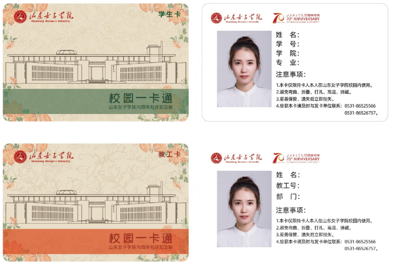 教工卡以玉兰花为底纹,玉兰花清新淡雅,气质高洁,亦有保持初心的寓意;学生卡以海棠花为底纹,海棠花温和美丽,象征着女院学子优雅且充满活力;卡片搭配学校图书馆建筑线条,既简约又不失内涵。目前,新校园卡已在全校2022级5700余名新生中发放。
