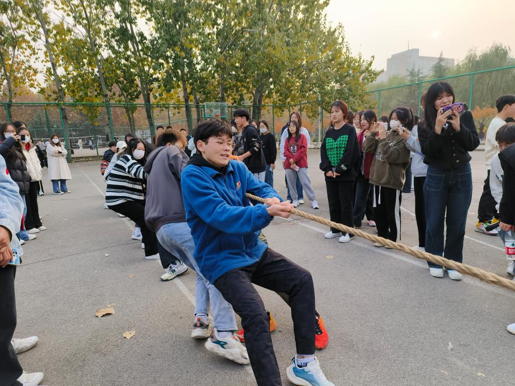 最后的拔河比赛,参赛选手们团结一致,使比赛一开始便进入了白热化,绳子上的胜负标记在两队的中线间不断移动,场外同学们地喝彩声、加油声不绝于耳,参赛选手们铆足了劲,紧紧握住手中的绳子,将永不言败的精神展现得淋漓尽致。