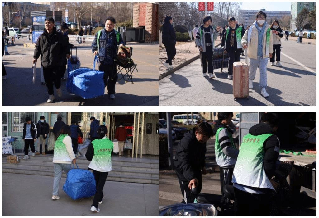 开学前,志愿服务队立足实际,精准摸排同学们的所急所需。通过摸排反馈,问题主要集中在返校行李较多给行动带来不便。志愿者对此形成需求人员相关信息台账,组织志愿者以结对帮扶的形式,提前沟通,合理规划,推行“定时、定点、定人”的“一对一”服务。“学姐我现在在南门等你呢”“欢迎学姐回家”“学妹我帮你拿”,“艺小益”化身“行李搬运工”,为新学期入校“保驾护航”,缓解“最后一公里”难题。