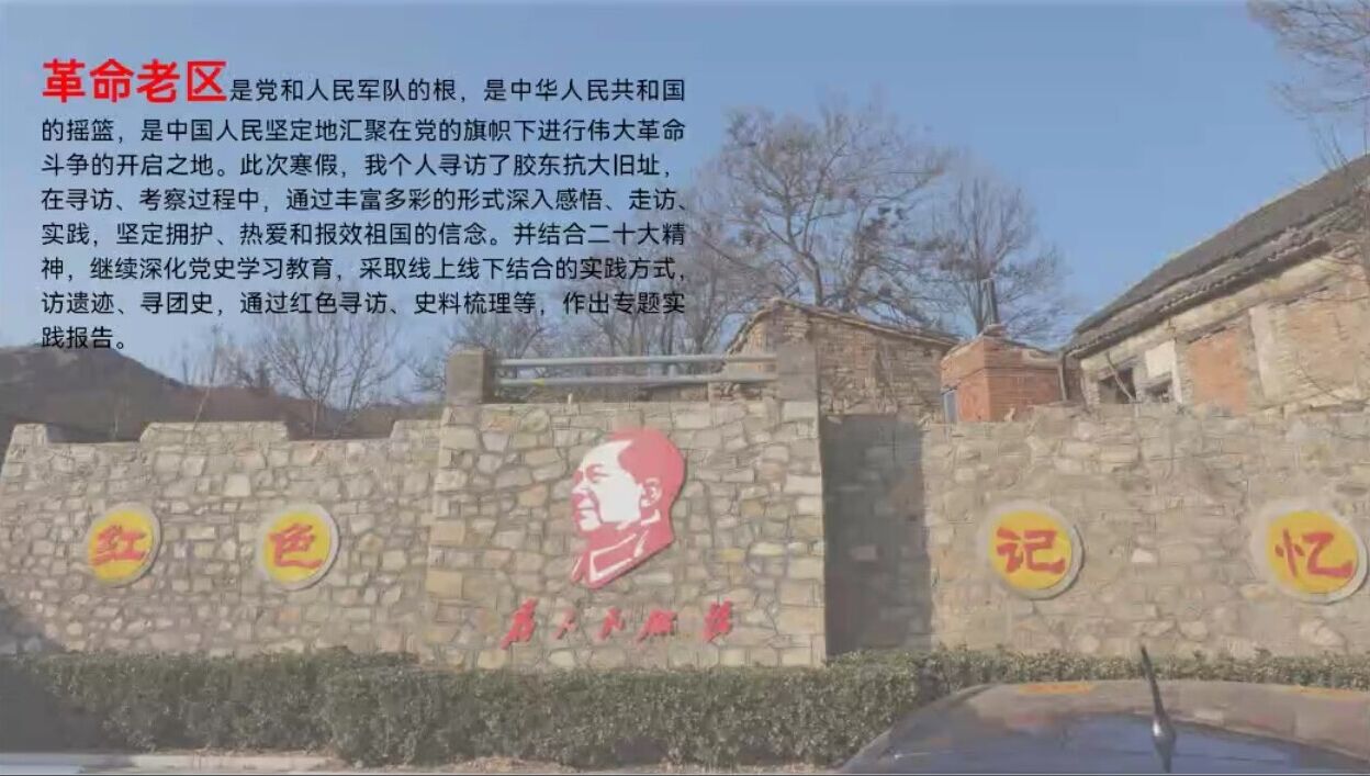 参加云思政板块的青年学子深入家乡,走访家乡红色纪念展馆、乡镇街道等,开展专题调研与志愿服务。曲雪瑜同学采用线上线下相结合的方式,寻访了胶东抗大旧址,扎扎实实开展好党史学习教育;张于婷同学设计清廉建设相关调查问卷,问廉于民,问案于民,问计于民;黄钰婷同学针对老年人安全意识现状及问题进行实地调研并撰写了相关调研报告;王辉同学走访了白谷堆村留守儿童,并投身于对留守儿童的学业帮扶和心理帮扶中。