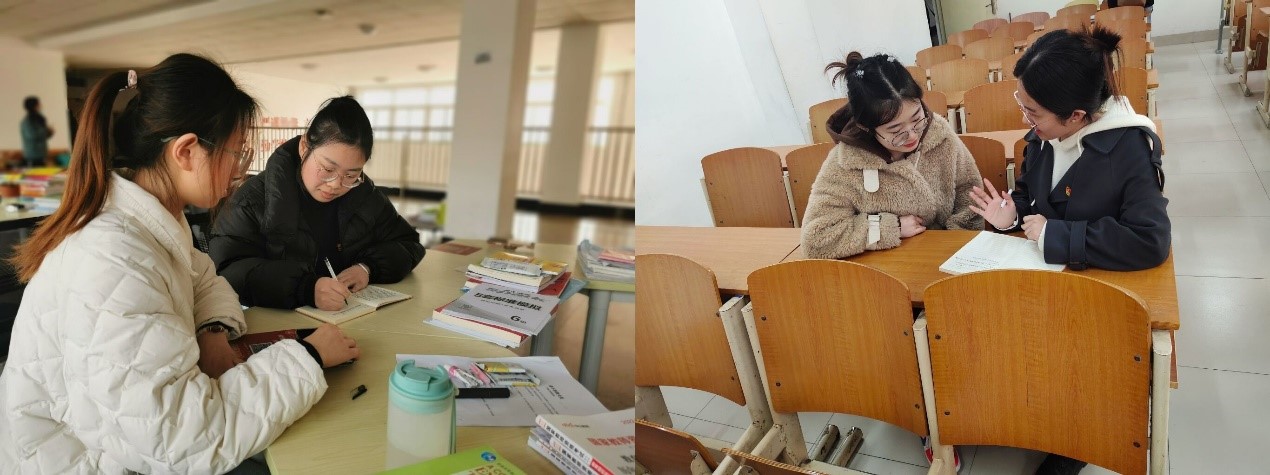示范引领带动。学院重视发挥学生党员的先锋模范和桥梁纽带作用,以支部为单位,开展党员与党员之间、党员与入党积极分子、党员与普通学生之间的谈心谈话,彼此分享学习收获、交流未来规划、传授成功经验、汇总意见建议,发挥朋辈力量。通过示范引领带动,密切学生之间横向联系,既能在学生间宣传党的路线方针政策,增强党组织在青年学生中的吸引力和影响力,又能锻炼学生党员的各项能力,影响带动广大学生明确学习目的,完成学习任务,充分展现青春接力、同侪互助的良好风貌。