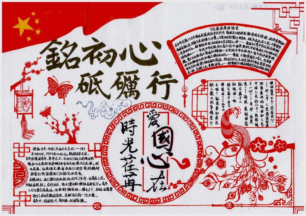 爱国是中华民族的优良传统,是砥砺奋进的精神源泉。3月25日,由数据科学与计算机学院组织的“时光荏苒,爱国心在”手抄报活动圆满结束,其旨在抒发学生爱国情怀,展示数科院学生精神风采,本次活动以手抄报的形式展现个人对于“爱国”这一主题的见解,34位助学金和励志奖学金获得者积极参与其中,将爱国之情系于笔尖,舞于纸面,以心为画,赋予白纸绚烂的色彩,每一张貌不惊人的白纸经浸染后都散发着独特的气息。