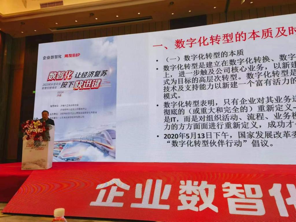 会上,沈传河院长以企业数字化转型与提质增效为主题进行演讲,从企业数字化转型的内涵、核心发展方向、实现途径及措施等方面同与会嘉宾一起分享了企业数字化转型的时代发展背景、焦点问题和应用实践。本次会议平行开展了四个分论坛活动,即济南市新生代企业家联谊会四新发展系列活动——企业数智化发展主题论坛、创新企业分论坛——用友YonSuite 全场景体验、智能制造分论坛——用友U9 cloud 全场景体验、成长型集团分论坛——用友U8 cloud 全场景体验,针对不同成长型企业分享数智化转型的解决方案。学校专业教师同与会年轻企业家就相关领域进行了广泛交流。