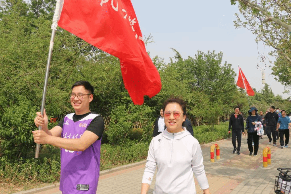 学校工会主席李丽华传达了教职工百日健步走活动方案,教职工代表介绍了通过微信小程序线上参与活动的具体流程。随着发令声响,教职工们昂首阔步,携手同行,迈着矫健的步伐,由南门广场出发,途经西门、北门,绕学校一周返回南门后行程结束。健步走过程中,大家精神抖擞,尽情享受阳光之美和体育之乐,一路欢声笑语,欢欣鼓舞。多彩的旗帜,兴奋的笑脸,成为一道靓丽的风景。启动仪式过后,教职工们将通过微信小程序每日打卡的方式继续参与到这项将持续百天的活动中。