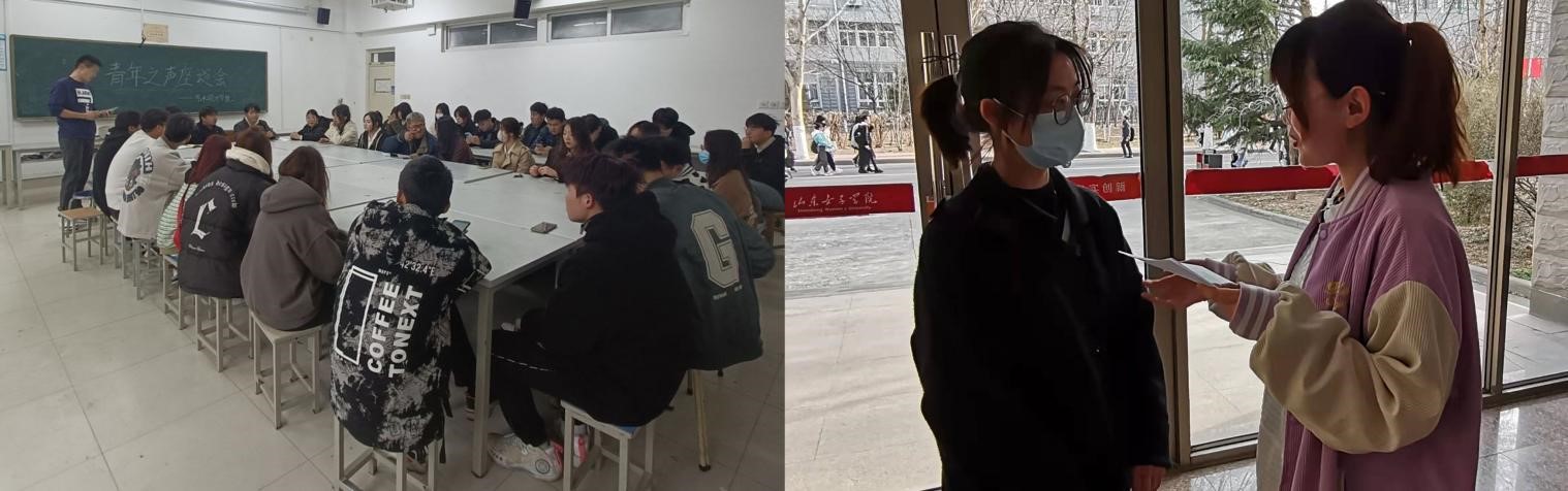 “青声”立足关注、解决青年学生学习生活诉求,以实际行动忙碌在学生服务第一线,本学期至今共召开座谈会7次,收到学生线上线下问题申诉47个,有效畅通了学生与学院之间的诉求渠道和常态化联系,为营造温馨和谐的校园氛围做出了积极贡献。